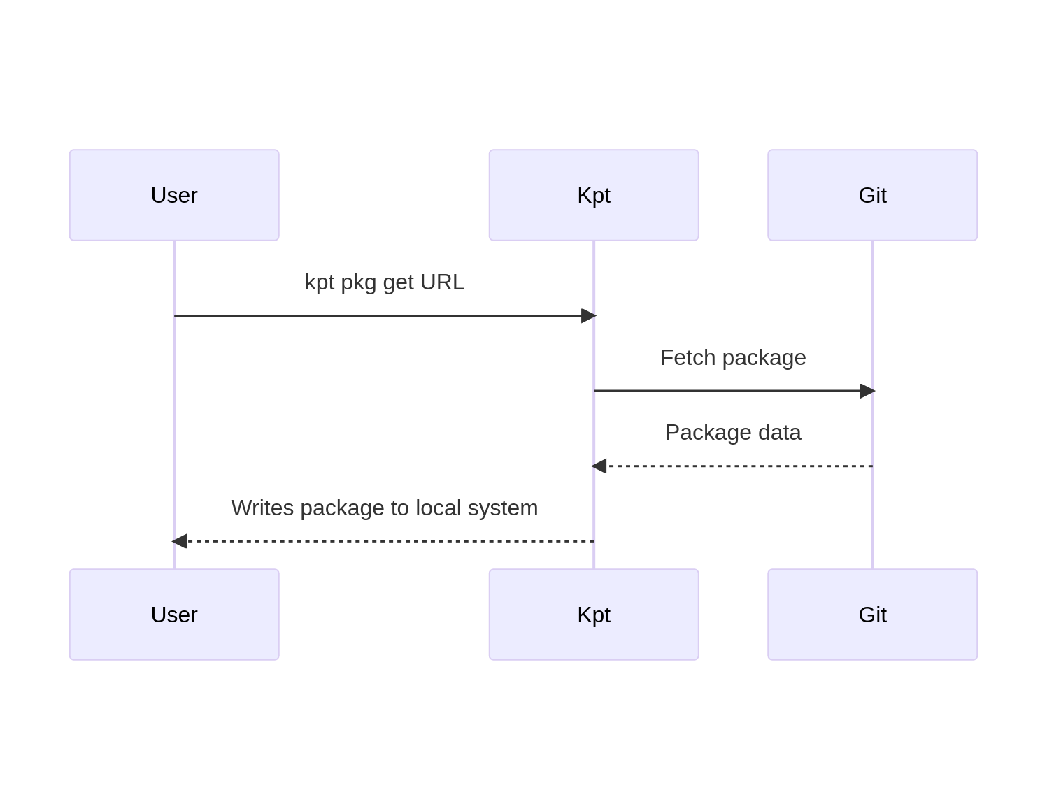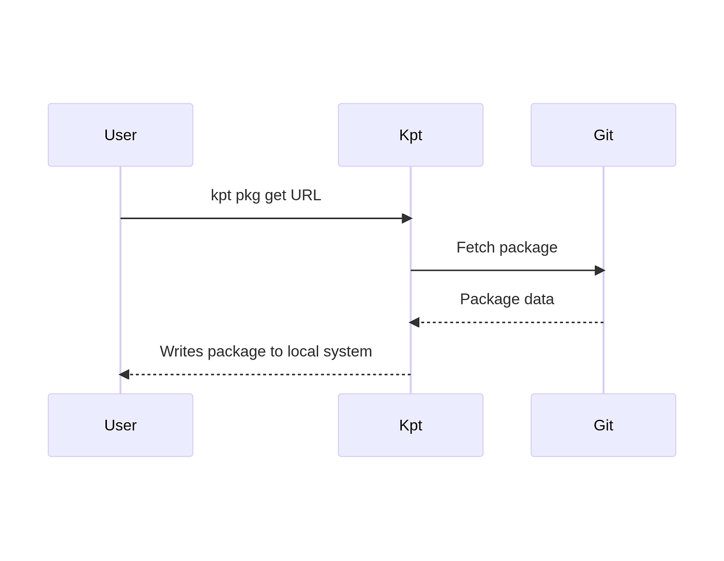 Kpt works as a Kubernetes package manager, letting you fetch, update, and apply configurations. You can get the basic configuration of a package, customize it for different environments, and still pull future changes from the upstream source. Here's a diagram explaining this: